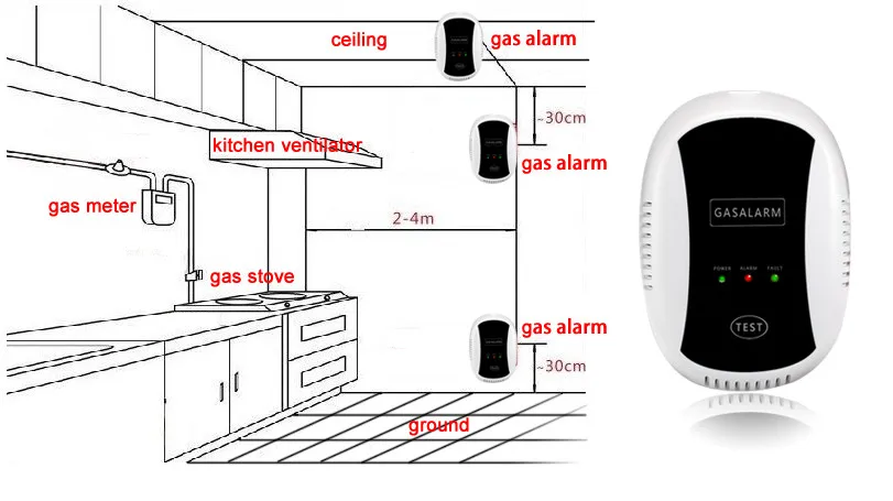 Место монтажа датчиков утечки зависит от того, содержание каких примесей в воздухе нужно отслеживать. Для контроля содержания природного газа — он поднимается — устройства нужно устанавливать ближе к потолку. Пропан и бутан тяжелее воздуха, поэтому контрольные приборы в этих случаях ставятся на расстоянии 15–20 см от пола.