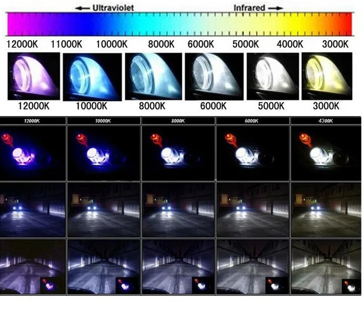 Большинство людей, желающих заменить галогенные фары на HID, делают это с намерением улучшить видимость на дороге, и в этом случае лучшим цветом HID будет 4300K, 5000K или 6000K .