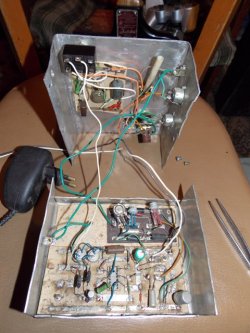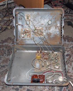 Дело было вдали от цивилизации, нормальных приборов инструментов и радиодеталей. Так что сильно не удивляйтесь «музейным экспонатам» из которых всё собрано. Делалось всё только для подбора катушки, так что тип остальных элементов роли не играл. К тому же, поблизости у знакомых водился осциллограф, позволяющий контролировать сигнал на радиочастотах, который для меня до сих пор остаётся в планах и мечтах.