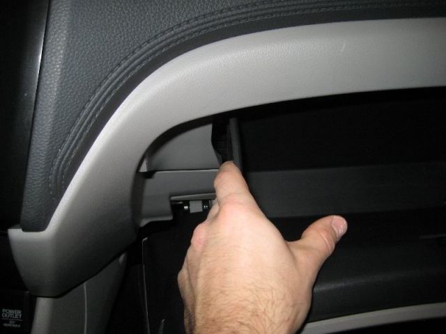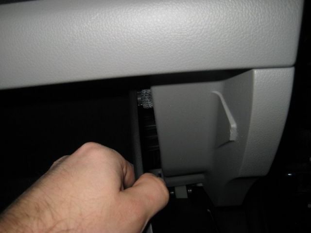 Откидываем бардачок вниз. Для этого достаточно сжать боковые стенки бардачка и вывести из зацепления защелки.
